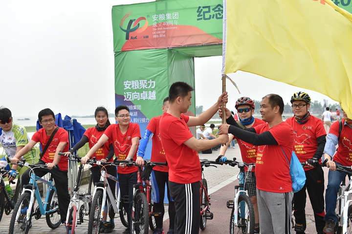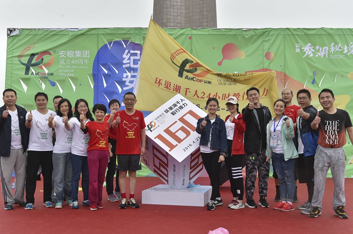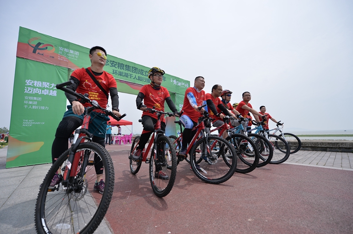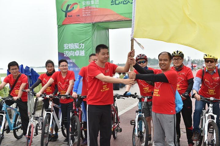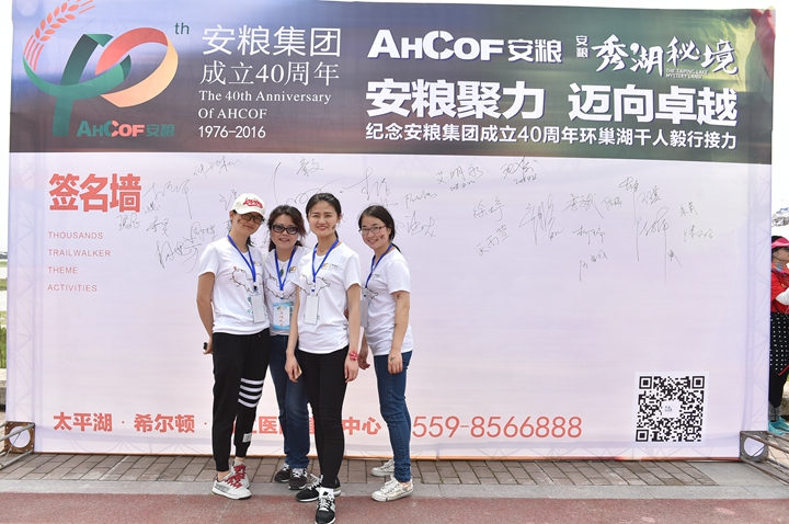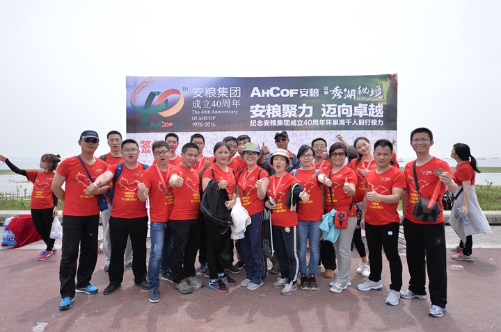 為慶祝安糧集團(tuán)成立40周年,2016年4月22-23日,為期兩天、歷程160公里的安糧集團(tuán)環(huán)巢湖千人毅行接力活動(dòng)在美麗的巢湖之濱熱情上演。本次活動(dòng)以“安糧聚力,邁向卓越”為主題,共有近千人參與,不僅有公司系統(tǒng)在職員工和退休老領(lǐng)導(dǎo)、老同志,國貿(mào)集團(tuán)范陽董事長還帶領(lǐng)國貿(mào)集團(tuán)的20多名同仁前來助陣。
