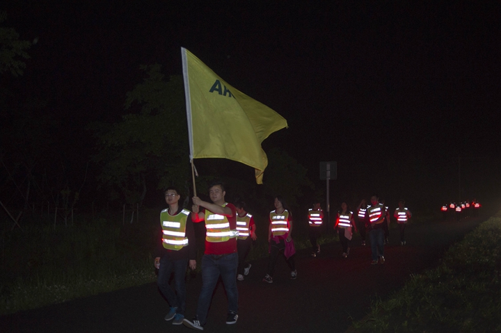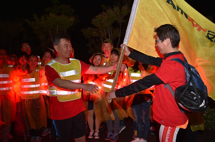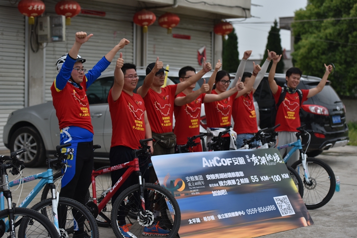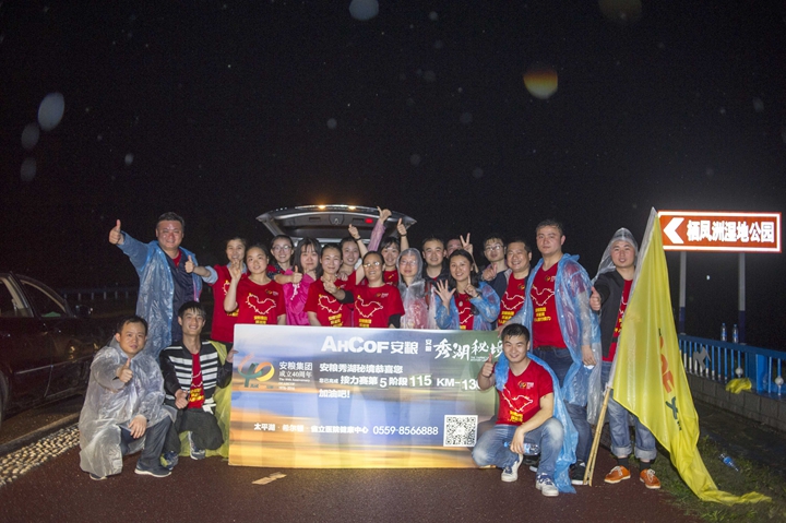 頂烈日出發(fā),迎風(fēng)雨歸來, 不經(jīng)歷風(fēng)雨,怎能見彩虹!本次活動(dòng)旨在通過比拼耐力、團(tuán)隊(duì)協(xié)作的戶外青春毅行方式,感懷安糧集團(tuán)四十年艱苦發(fā)展歷程,詮釋和回顧安糧集團(tuán)四十年坎坷發(fā)展之路!毅行隊(duì)伍匯聚成一股紅色浪潮,浩浩蕩蕩,與春潮共涌,隨鷗鷺爭翔?;蚵剑蚣沧?,徒步者三五相攜,騎行者如離弦之箭。追憶往昔,暢想未來,個(gè)個(gè)喜笑顏開,人人意氣風(fēng)發(fā)。披朝露,追夕照,抵烈日,沐風(fēng)雨。攜手前行有春光作伴,夜幕沉沉我們從不孤獨(dú),火熱的太陽燃燒出安糧人的激情,突來的風(fēng)雨洗禮出我們的團(tuán)結(jié)和堅(jiān)毅。毅行隊(duì)伍一路向前,徒步騎行從容接力,通過24小時(shí)的一路堅(jiān)持,穿過環(huán)巢一市三縣,不斷向目標(biāo)邁進(jìn),向勝利進(jìn)發(fā)!