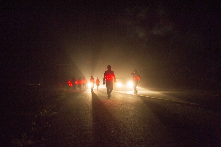 活動(dòng)分徒步、騎行兩個(gè)項(xiàng)目,以濱湖新區(qū)渡江戰(zhàn)役紀(jì)念館為起訖點(diǎn),自西向東、環(huán)巢而行,沿途先后歷經(jīng)肥東縣、巢湖市、廬江縣、肥西縣、濱湖新區(qū)。第一階段徒步毅行由解放碑出發(fā),行程10公里,參與人數(shù)700余人,12點(diǎn)前后陸續(xù)抵達(dá)半島碼頭接力點(diǎn)。第二階段全程150公里,由兩支自行車騎行大隊(duì)與四支徒步大隊(duì)組成。在第一階段隊(duì)伍全部抵達(dá)后,第二階段隊(duì)伍中午12:30騎行隊(duì)伍出發(fā),按照45km/棒開始接力。22日晚7時(shí)許,騎行隊(duì)伍抵達(dá)預(yù)定地點(diǎn)。19:30,徒步隊(duì)伍接力開始出發(fā),挑戰(zhàn)夜行,每15公里交接一棒。22日夜的巢湖岸邊,夜黑如墨,風(fēng)大雨急,氣溫驟降,四組徒步隊(duì)員們頂風(fēng)冒雨,不畏艱難、相攜相伴,堅(jiān)毅前行,如時(shí)完成!