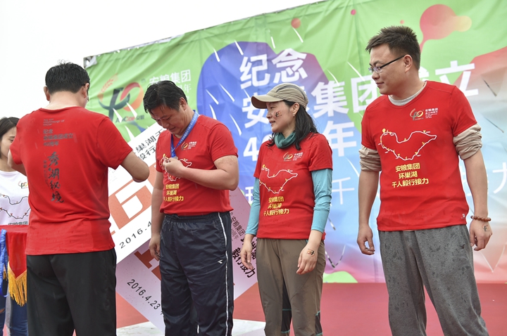 在春雨浸染的幸福氛圍中,現(xiàn)場舉行了簡短的閉幕式,集團(tuán)、控股、各板塊公司領(lǐng)導(dǎo),后六程接力隊(duì)員和活動(dòng)志愿者共一百多人參加了閉幕式。在大家的歡呼聲中,在肥的集團(tuán)領(lǐng)導(dǎo)班子成員為“安糧集團(tuán)環(huán)巢湖毅行紀(jì)念標(biāo)志”揭幕,并為后六程騎行和徒步的接力隊(duì)代表頒發(fā)紀(jì)念獎(jiǎng)?wù)隆?/span>