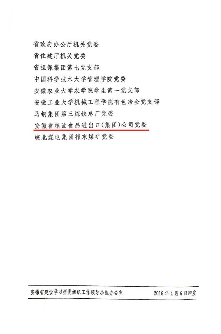 安糧集團(tuán)黨委榮獲“省學(xué)習(xí)型黨組織建設(shè)工作示范點(diǎn)”榮譽(yù)稱號(hào)