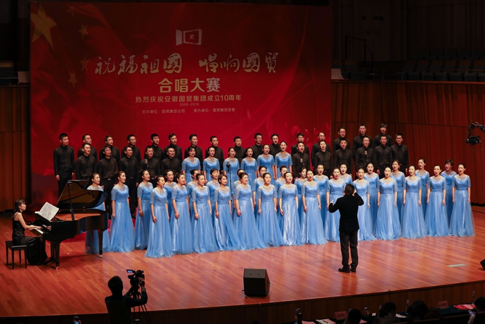 2016年9月28日,為慶祝中華人民共和國(guó)67周年華誕、紀(jì)念國(guó)貿(mào)集團(tuán)成立10周年,由國(guó)貿(mào)集團(tuán)主辦的“祝福祖國(guó),唱響國(guó)貿(mào)”合唱大賽在合肥大劇院隆重舉行。本次合唱比賽共有來(lái)自國(guó)貿(mào)系統(tǒng)的11支代表隊(duì)參加,其中安糧集團(tuán)派出兩支代表隊(duì),分別是由集團(tuán)本部、控股及控股除建工以外其他下屬企業(yè)員工組成的“糧安天下”合唱團(tuán)和由合肥建工組建的“基業(yè)長(zhǎng)青”合唱團(tuán)。經(jīng)過(guò)激烈的角逐,“糧安天下”合唱團(tuán)最終一舉奪魁,“基業(yè)長(zhǎng)青”合唱團(tuán)獲得三等獎(jiǎng)。