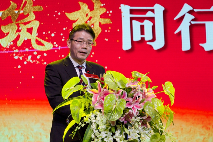 來自相關(guān)政府部門、國貿(mào)集團(tuán)、合作伙伴的嘉賓代表也為安糧集團(tuán)送上誠摯的祝福。省國貿(mào)集團(tuán)董事長范陽、省商務(wù)廳廳長張箭、省國資委副主任項(xiàng)小龍?jiān)趹c典上致辭。他們一致肯定了安糧40年來取得的發(fā)展成就,希望安糧繼續(xù)保持良好發(fā)展態(tài)勢,努力實(shí)現(xiàn)更高質(zhì)量、更好效益的企業(yè)發(fā)展,助力建設(shè)“五大發(fā)展”美好安徽。日本水產(chǎn)株式會社的代表松島和浩部長也蒞臨現(xiàn)場,感懷與安糧三十年的合作歷程,表示愿與安糧同愿同行,互進(jìn)共榮。