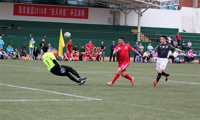 2016年5月13日,國(guó)貿(mào)集團(tuán)2016年“安天利信杯”足球賽在合肥市體育運(yùn)動(dòng)學(xué)校拉開(kāi)戰(zhàn)幕,共有來(lái)自國(guó)貿(mào)系統(tǒng)的7支代表隊(duì)參加角逐。安糧集團(tuán)足球隊(duì)在首輪與華安公司代表隊(duì)的對(duì)話(huà)中取得開(kāi)門(mén)紅,以6:2的比分輕取對(duì)手,在全取3分的同時(shí),憑借凈勝球優(yōu)勢(shì)領(lǐng)跑首輪積分榜。