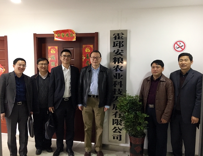 2017年3月9日,安徽國貿(mào)集團(tuán)控股有限公司黨委書記、董事長范陽,副總經(jīng)理程保銀,綜合業(yè)務(wù)部總經(jīng)理王斌等一行四人在安糧實(shí)業(yè)總經(jīng)理吳國杰、總經(jīng)理助理高龍的陪同下,赴霍邱安糧農(nóng)業(yè)科技發(fā)展有限公司(以下簡稱“霍邱安糧”)進(jìn)行調(diào)研考察。