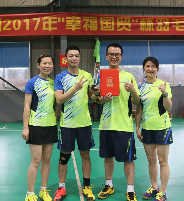 5月24日-25日,2017年安徽國(guó)貿(mào)集團(tuán)“幸福國(guó)貿(mào)”杯羽毛球比賽在合肥市夠運(yùn)動(dòng)羽毛球館舉行,國(guó)貿(mào)集團(tuán)系統(tǒng)的八支隊(duì)伍展開(kāi)了為期兩天的比賽。經(jīng)過(guò)激烈比拼,安糧集團(tuán)代表隊(duì)榮獲團(tuán)體冠軍,在單打比賽中,高蓓蓓(安糧地產(chǎn))獲得女子單打冠軍、戴琍(安糧控股)獲得女子單打季軍、韓詠梅(盛安國(guó)際)獲得女子單打第四名、許朝陽(yáng)(安糧興業(yè))獲得男子單打季軍、張冀海(安糧國(guó)際)獲得男子單打第六名,安糧集團(tuán)代表隊(duì)以出色的成績(jī)載譽(yù)歸來(lái)。