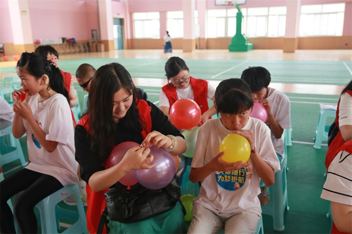 見面會(huì)上,團(tuán)委書記方嘉亮向老師和小朋友們介紹了安糧集團(tuán)情況及本次活動(dòng)的安排。小朋友們?yōu)榘布Z集團(tuán)的“大哥哥”、“大姐姐”們表演了舞蹈和古箏演奏,志愿者代表為小朋友們演唱了歌曲《隱形的翅膀》。孩子們雖然在聽力、視力、語(yǔ)言表達(dá)上有障礙,但是,精彩的舞蹈、動(dòng)聽的琴聲、無邪的笑臉讓這樣一群“特殊”的孩子們更顯珍貴。表演結(jié)束,志愿者們用熱烈的掌聲表達(dá)內(nèi)心的感動(dòng)與贊揚(yáng)。才藝表演結(jié)束后,志愿者們與小朋友們“一對(duì)一”結(jié)對(duì)子,進(jìn)行了一場(chǎng)生動(dòng)活潑的吹氣球游戲,志愿者們還向小朋友們贈(zèng)送了精心準(zhǔn)備的兒童節(jié)小禮物,孩子們?yōu)橹驹刚叽魃狭思t領(lǐng)巾。