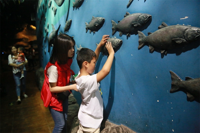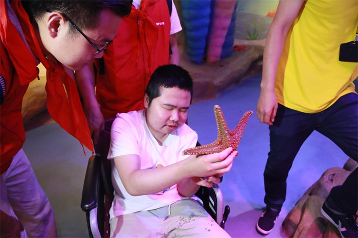 見面會(huì)結(jié)束后,志愿者們與小朋友手牽手,乘車來到合肥海洋館。珊瑚、魚兒五彩斑斕,海獅、海豚表演精彩紛呈,小朋友們因?yàn)槁犃蛞暳φ系K無法完全感受得到,但哥哥姐姐們用愛與陪伴、細(xì)心描述讓小朋友“看”到、“聽”到、感受到了世界的美好,純真的笑容背后是一個(gè)美麗多彩的世界。結(jié)束海洋館體驗(yàn),志愿者們與小朋友共同制作漢堡,共同享受了快樂的午餐。