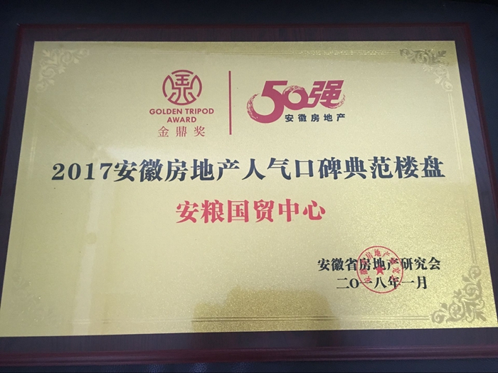 安徽眾多優(yōu)秀品牌房企群雄逐鹿,經(jīng)由安徽百萬(wàn)地產(chǎn)精英、數(shù)十位行業(yè)專家及大眾評(píng)審親鑒共證,安糧地產(chǎn)實(shí)力所歸,勇奪金鼎!榮獲2017年安徽房地產(chǎn)綜合實(shí)力50強(qiáng)第8位及2017年安徽房地產(chǎn)十大優(yōu)秀誠(chéng)信企業(yè),安糧國(guó)貿(mào)中心項(xiàng)目榮獲2017安徽房地產(chǎn)人氣口碑典范樓盤。同時(shí),安糧國(guó)貿(mào)中心營(yíng)銷總監(jiān)季玉梅榮獲2017安徽房地產(chǎn)營(yíng)銷風(fēng)云人物。