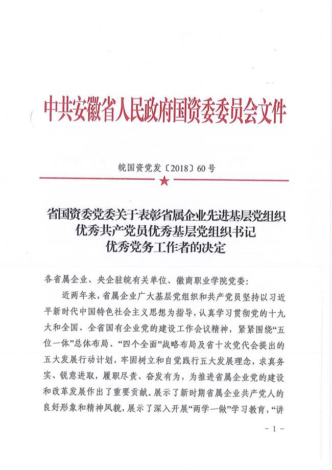 為大力弘揚黨的優(yōu)良傳統(tǒng)和作風,激勵省屬企業(yè)廣大基層黨組織和共產(chǎn)黨員在各自工作中充分發(fā)揮戰(zhàn)斗堡壘和先鋒模范作用,七一前夕,省國資委黨委下發(fā)《關于表彰省屬企業(yè)先進基層黨組織優(yōu)秀共產(chǎn)黨員優(yōu)秀基層黨組織書記優(yōu)秀黨務工作者的決定》,安糧控股國際結(jié)算部總經(jīng)理武義海同志榮獲安徽省國資系統(tǒng)“優(yōu)秀共產(chǎn)黨員”稱號。