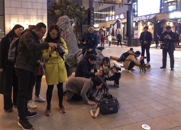 夜景拍攝非常講究技巧,會(huì)員們或蹲或趴的攝影姿勢(shì)也成了本次攝影課的一道風(fēng)景。拍攝過程中,大家不斷探討各自的作品,請(qǐng)教老師拍攝要點(diǎn),力求拍攝一張好照片。晚間的春風(fēng)有些料峭,但會(huì)員們熱情洋溢,現(xiàn)場(chǎng)笑語(yǔ)不斷。