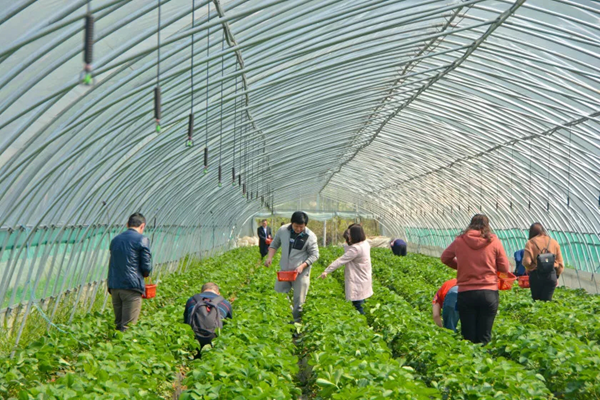 中午,在當(dāng)?shù)叵愦晦r(nóng)家樂飽嘗了一頓鄉(xiāng)間美味后,我們乘車前往舒城扶貧產(chǎn)業(yè)園——草莓示范園。成片的大棚映入眼簾,馥郁的草莓甜香撲面而來,繽紛靚麗的身影在田間穿梭忙碌,一個(gè)個(gè)籃筐里漸漸壘起了小山,品嘗著草莓的甜蜜,滋潤(rùn)喉間,其樂無窮。下午三時(shí),我們乘坐大巴,踏上歸程。