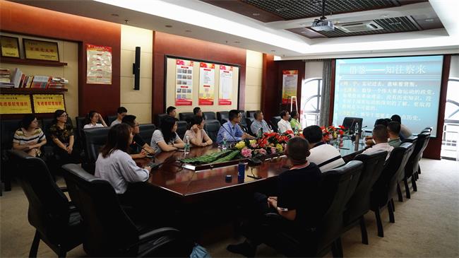 參觀結(jié)束后,實(shí)業(yè)黨支部特邀南昌市委黨?;A(chǔ)理論教研部副主任趙坤教授為參加活動(dòng)的全體黨員在紀(jì)念館黨員活動(dòng)室就地上了一堂主題為“重溫紅色經(jīng)典,深入學(xué)習(xí)四個(gè)意識(shí)、四個(gè)自信、兩個(gè)維護(hù)核心精神”的現(xiàn)場(chǎng)黨課,既詳實(shí)又生動(dòng)地介紹了江西這片紅色土地上的革命歷史,從黨史的視角梳理了“四個(gè)意識(shí)”、“四個(gè)自信”、“兩個(gè)維護(hù)”的重要性和迫切性,進(jìn)一步領(lǐng)會(huì)了習(xí)總書(shū)記關(guān)于推進(jìn)紅色基因傳承的要求。