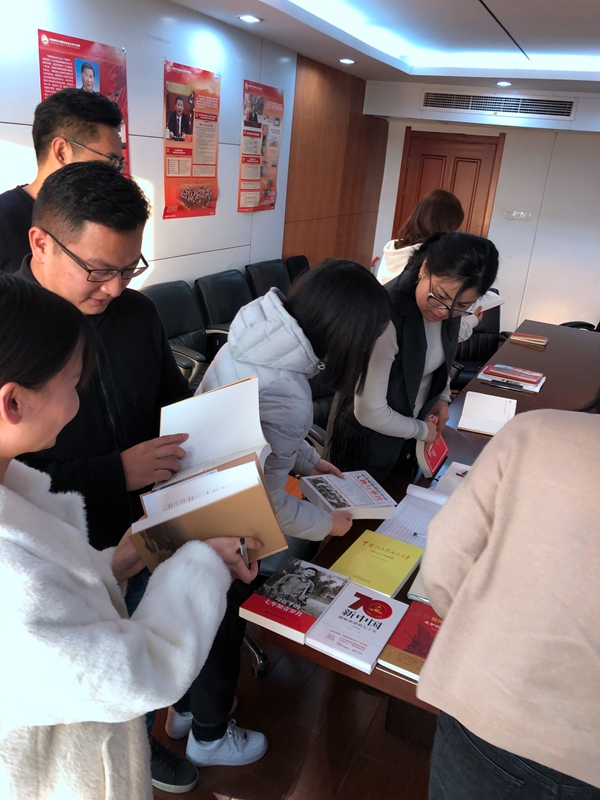 11月28日,安糧實業(yè)黨支部在17樓黨員活動室正式啟動“圖書漂流 閱讀分享”活動?;顒邮椰F(xiàn)有書籍和補充讀本通過漂流形式在黨員間輪轉(zhuǎn),黨員閱讀后互相交流閱讀感想。