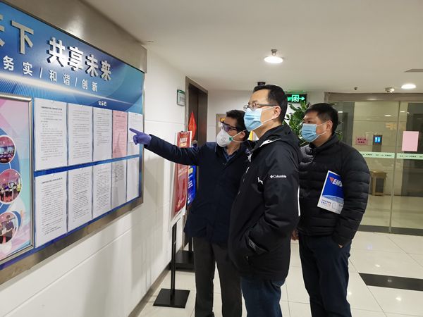 檢查組每到一處都深入了解該單位值班值守制度、疫情防治和防控要求的宣傳普及、清潔消毒、全員檢查排查、體溫檢測(cè)和登記、突發(fā)事件應(yīng)急預(yù)案等各項(xiàng)工作的具體開展情況,在了解各單位近期疫情防控工作開展情況后,孫毅同志強(qiáng)調(diào),安糧集團(tuán)作為國(guó)有企業(yè),更要增強(qiáng)責(zé)任擔(dān)當(dāng),提高政治站位,聚焦外防輸入、內(nèi)防擴(kuò)散兩大關(guān)鍵環(huán)節(jié),精益求精、做實(shí)做細(xì)做好防控措施。他提出幾點(diǎn)要求:一是要狠抓兩項(xiàng)工作,堅(jiān)持疫情防控和復(fù)工復(fù)產(chǎn)工作兩手抓、兩手硬,積極謀劃恢復(fù)生產(chǎn)經(jīng)營(yíng)準(zhǔn)備,爭(zhēng)取早日全面復(fù)工;二是要確保兩大安全,即單位人員安全、資金安全,復(fù)工時(shí)要確保員工的防護(hù)用品特別是口罩的配備到位;三是要特別注意建筑工地施工人員的復(fù)工管理,嚴(yán)格按照屬地管理要求和上級(jí)單位部署做好復(fù)工申請(qǐng),確保防控機(jī)制到位、人員摸排到位、物資準(zhǔn)備到位、現(xiàn)場(chǎng)管控到位、應(yīng)急處置到位、教育交底到位、安全措施到位;四是要突出聯(lián)防聯(lián)控,積極主動(dòng)配合好有關(guān)部門開展防控工作,展現(xiàn)國(guó)企的擔(dān)當(dāng)和作為。