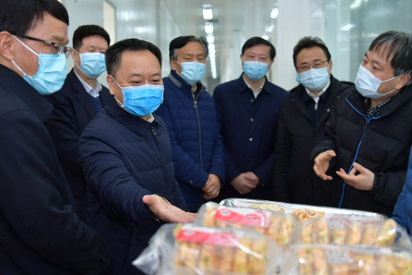 李國英省長首先認(rèn)真聽取了巢湖嘉誼食品有限公司總經(jīng)理朱玉倉關(guān)于企業(yè)疫情防控和復(fù)工復(fù)產(chǎn)工作的情況匯報(bào)。李省長重點(diǎn)了解了企業(yè)疫情防控的具體措施、應(yīng)急預(yù)案,并詳細(xì)了解了企業(yè)復(fù)工復(fù)產(chǎn)的進(jìn)度,他要求企業(yè)負(fù)責(zé)人在疫情防控最吃勁的關(guān)鍵階段一定不能麻痹大意,要堅(jiān)持疫情防控和復(fù)工復(fù)產(chǎn)兩手抓兩手硬,要在切實(shí)做好疫情防控的基礎(chǔ)上,有序復(fù)工復(fù)產(chǎn)。