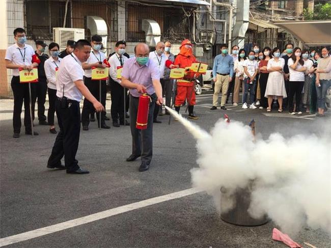 演習(xí)結(jié)束后,大廈消防員還現(xiàn)場(chǎng)演示干粉滅火器的使用要領(lǐng),參加演習(xí)的員工踴躍。