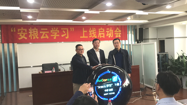夢想從學習開始,事業(yè)從實踐起步。11月18日,安糧集團職工網(wǎng)絡學習培訓平臺-------“安糧云學習”------上線啟動會在盛安廣場18樓舉行,安糧集團黨委書記、董事長曹訓立,安糧集團黨委副書記、紀委書記孫毅與平臺供應商江蘇云學堂副總經(jīng)理張杰共同啟動平臺,安糧系統(tǒng)各單位近60名員工作為學習代表見證了“安糧云學習”平臺正式上線。
