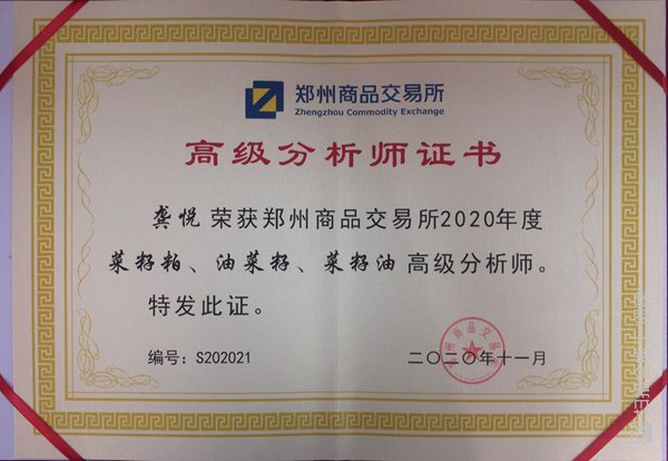 2020年11月17日,鄭州商品交易所聯(lián)合期貨日報等有關(guān)單位舉辦的“鄭商所2020年度高級分析師評選活動”公布結(jié)果。共有來自數(shù)百家期貨公司、風(fēng)險管理公司、投資機(jī)構(gòu)和產(chǎn)業(yè)鏈企業(yè)的分析師參加評選,經(jīng)過三個多月的激烈角逐,歷經(jīng)線上專家評審與現(xiàn)場評審等階段,安糧期貨研究所龔悅再次被評為“鄭商所2020年度高級分析師(菜系)”。同時,棉花研究員李瑩今年首次參評,便成功入圍前12名的現(xiàn)場評審環(huán)節(jié),其研究框架受到評委老師的較強(qiáng)認(rèn)可。