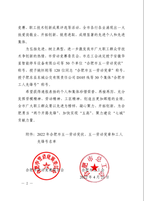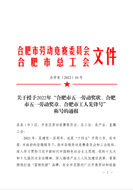 5月1日,合肥市勞動(dòng)競賽委員會、合肥市總工會聯(lián)合發(fā)布《關(guān)于授予2022年“合肥市五一勞動(dòng)獎(jiǎng)狀、合肥市五一勞動(dòng)獎(jiǎng)?wù)隆⒑戏适泄と讼蠕h號”稱號的通報(bào)》,合肥建工辦公室主任張海東榮獲2022年“合肥市五一勞動(dòng)獎(jiǎng)?wù)隆狈Q號。