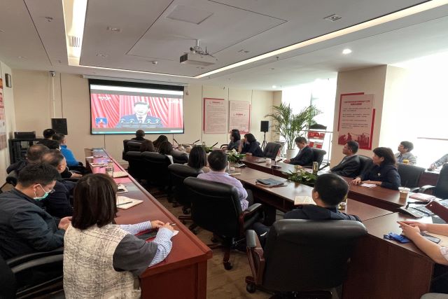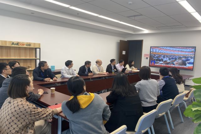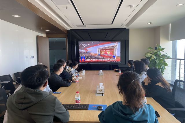 當(dāng)天上午,在安糧中心3208會議室內(nèi),安糧集團(tuán)黨委書記曹訓(xùn)立等黨委委員,團(tuán)委委員,集團(tuán)、控股支部黨員,部門負(fù)責(zé)人以及子公司黨員領(lǐng)導(dǎo)干部、統(tǒng)戰(zhàn)人員代表集中收看了開幕直播盛況,同志們聚精會神地聽、專心致志地記,仿佛置身于大會現(xiàn)場。
