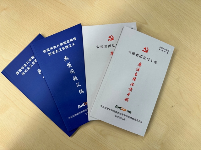 會(huì)議還給每位新任職干部發(fā)放了《安糧集團(tuán)黨員干部廉潔從業(yè)必讀手冊(cè)》和《違反中央八項(xiàng)規(guī)定精神形式主義官僚主義典型問(wèn)題匯編》。