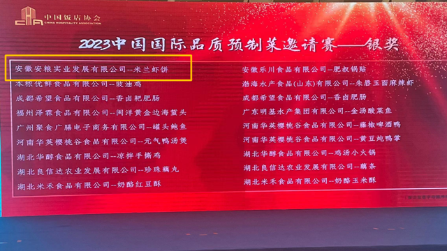 在本屆食材節(jié)閉幕式暨頒獎典禮上,安糧實業(yè)榮獲“最佳新品創(chuàng)意獎”,同時,田田屋“米蘭蝦餅”、“玉米烙”產(chǎn)品也分別獲“2023中國國際品質(zhì)預制菜邀請賽”銀獎、銅獎。