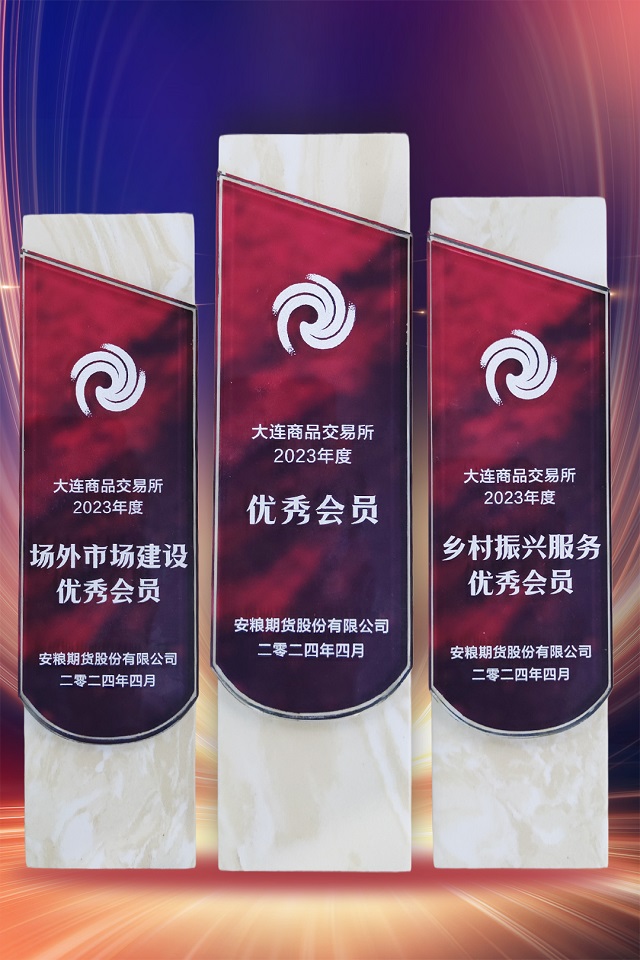 2024年4月8日,安糧期貨在大連商品交易所2023年度優(yōu)秀會(huì)員表彰中榮獲“優(yōu)秀會(huì)員”、“場(chǎng)外市場(chǎng)建設(shè)優(yōu)秀會(huì)員”、“鄉(xiāng)村振興服務(wù)優(yōu)秀會(huì)員”三項(xiàng)殊榮。