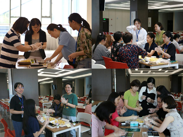 接著進(jìn)入了大家最躍躍欲試的環(huán)節(jié)——DIY綠豆糕。同事們圍坐一堂,有的揉面,有的裝模,有的擺盤,有的包裝,大家一邊認(rèn)真制作,一邊相互交流。在大家精心制作下,一個(gè)個(gè)、一盒盒香甜美味、花色各異的綠豆糕呈現(xiàn)在眼前?;顒?dòng)現(xiàn)場其樂融融,洋溢著和諧、平安與幸福的氛圍,大家一起感受親手制作綠豆糕帶來的歡樂。