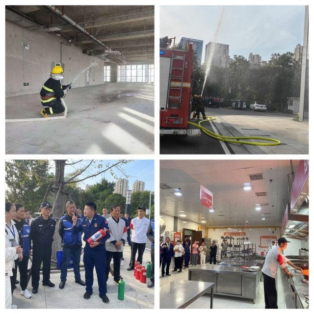 下午3時,消防應(yīng)急演練總指揮下達演練開始指令。工作人員在預(yù)定地點放置煙霧彈,觸發(fā)火災(zāi)報警,模擬火情發(fā)生場景。安糧中心辦公樓火警警報鳴響,全體職工迅速進入緊急疏散狀態(tài),各樓層消防和應(yīng)急救援隊員迅速反應(yīng),有序引導(dǎo)職工從安全出口撤離到避難層。同時,消防隊員全副武裝,封控火場、撲滅火災(zāi)。在火警解除后,救援大隊隊員開展滅火器使用教學(xué)、油鍋起火的預(yù)防和撲救等內(nèi)容,參與演習(xí)的物業(yè)、餐飲安全員們分別用不同的方式進行滅火實操,切身感受了正解與錯誤滅火的后果。