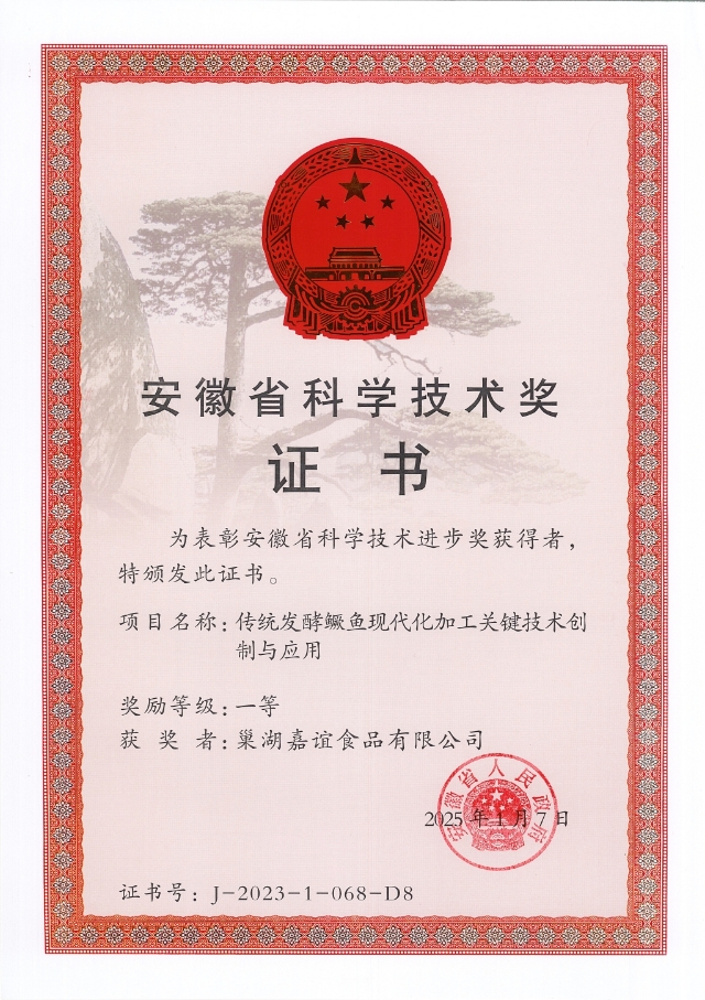 近日,安徽省科學(xué)技術(shù)獎(jiǎng)評選結(jié)果正式公布,安糧旗下巢湖嘉誼食品有限公司憑借“傳統(tǒng)發(fā)酵鱖魚現(xiàn)代化加工關(guān)鍵技術(shù)創(chuàng)制與應(yīng)用”項(xiàng)目,榮獲安徽省科學(xué)技術(shù)獎(jiǎng)一等獎(jiǎng)。這一重大科技成果的取得,充分彰顯了安糧堅(jiān)持科技創(chuàng)新驅(qū)動(dòng)發(fā)展、深化產(chǎn)學(xué)研合作的戰(zhàn)略成效。